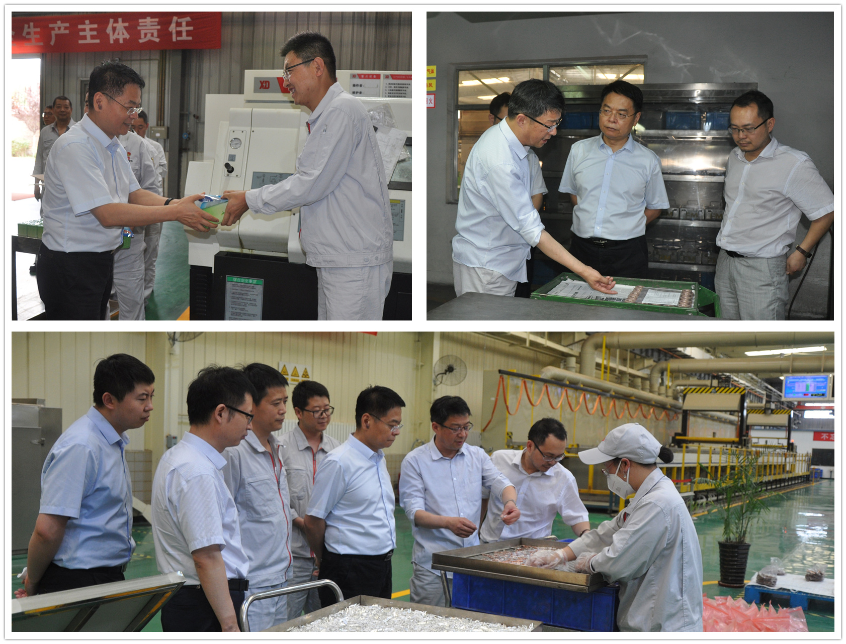 裴振江一行深入生產(chǎn)車間,詳細了解觸頭產(chǎn)品生產(chǎn)工藝和加工過程,慰問了一線員工,并聽取了天水合金負責(zé)人關(guān)于業(yè)務(wù)發(fā)展、市場開拓及上半年預(yù)算完成情況的匯報。