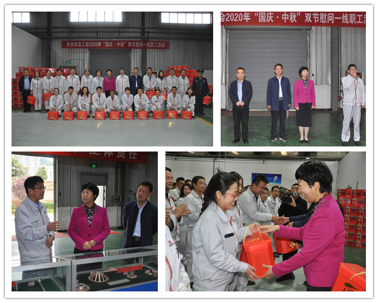 9月21日,在國慶、中秋雙節(jié)來臨之際,天水市市人大常委會副主任、市總工會主席王曉琴,市總工會黨組書記、常務副主席龐明全一行深入天水合金生產一線開展“國慶.中秋”雙節(jié)慰問職工活動。天水合金領導班子成員陪同慰問。