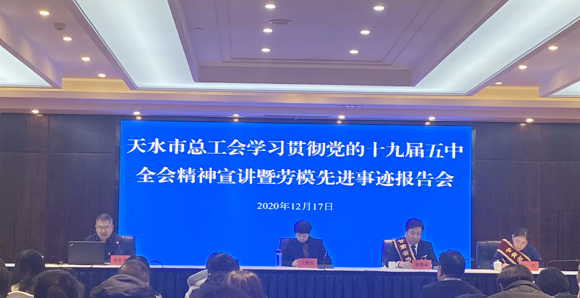 天水合金參加天水市總工會(huì)學(xué)習(xí)貫徹黨的十九屆五中全會(huì)精神宣講暨勞模先進(jìn)事跡報(bào)告會(huì)